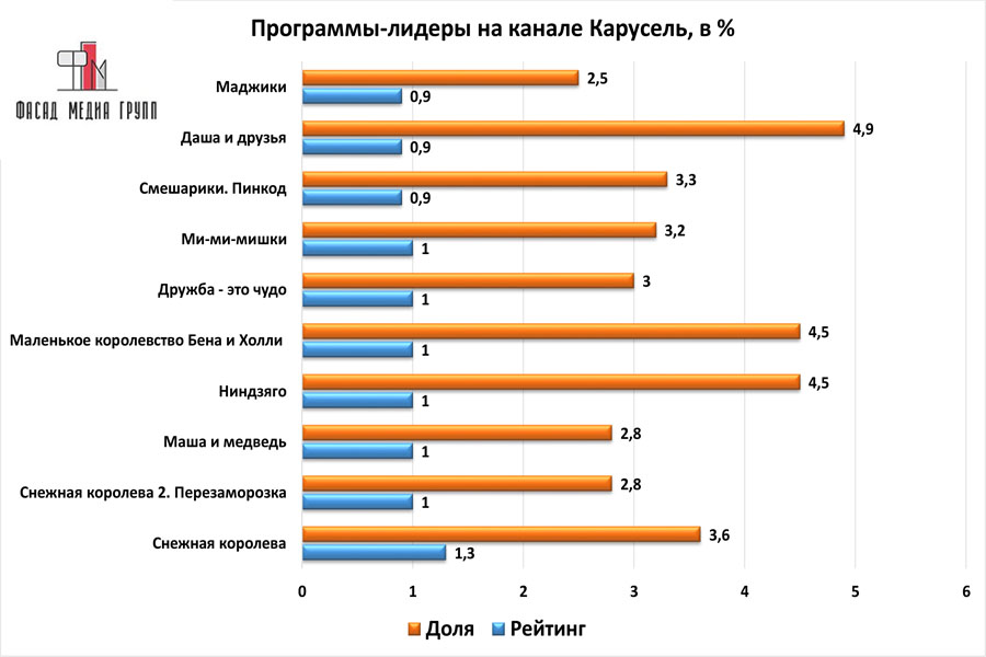 Популярность телеэфира на «Карусели» приводит к ежегодному увеличению спроса на рекламное время. Для привлечения клиентов из разных регионов России, увеличения процента продаж, повышения имиджа компании и узнаваемости бренда – размещайте рекламу на «Карусели». «Карусель» – это проверенный и востребованный канал для размещения рекламы на тверском ТВ. Для размещения рекламы на телевидении обращайтесь в рекламное агентство «Фасад Медиа Групп». Будем рады сотрудничеству.